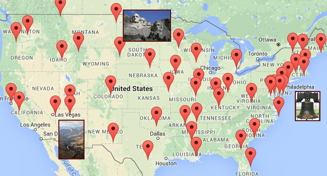 Road trip for 50 landmarks, monuments, etc.