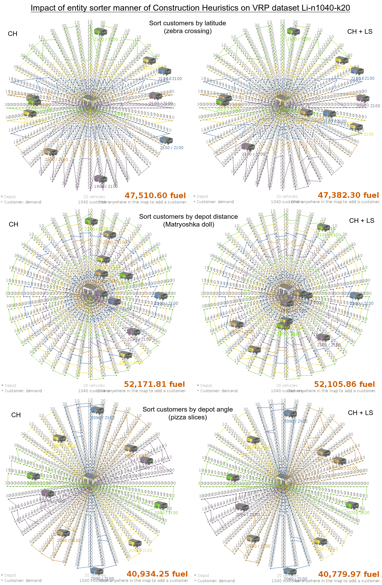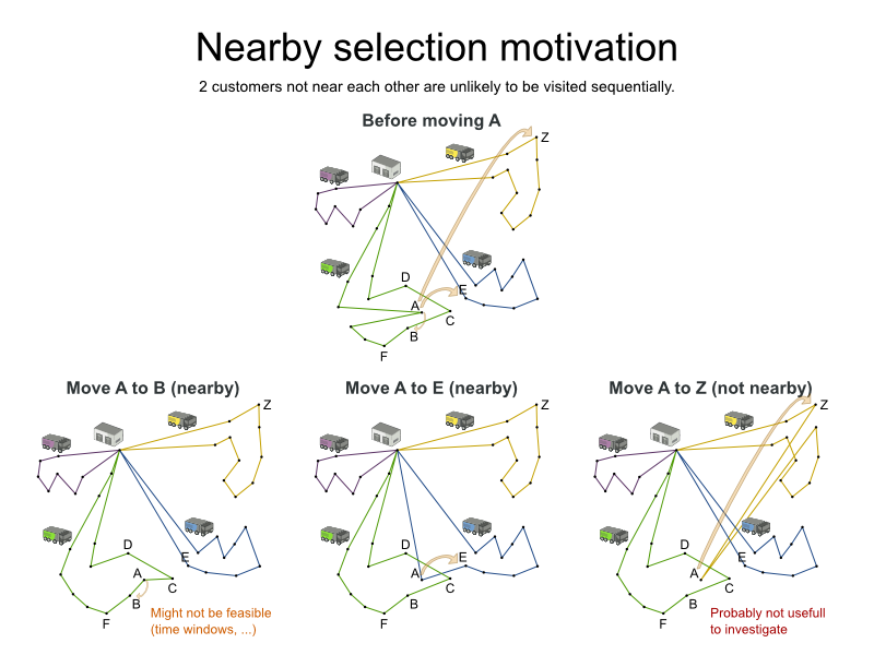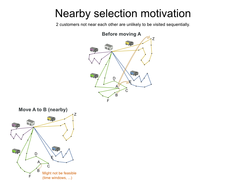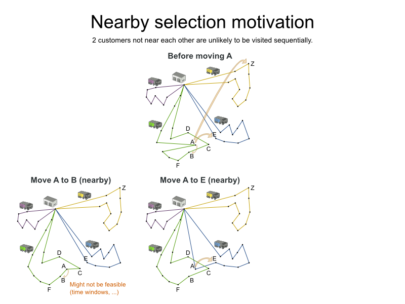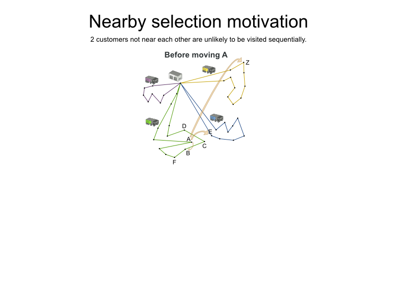Assumption: An optimal VRP route has no crossing lines of the same color.